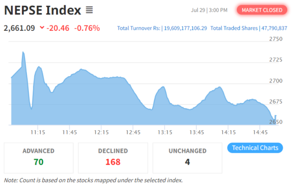 नेप्से सामान्य अंक घट्यो, कारोबार रकम भने बढ्यो