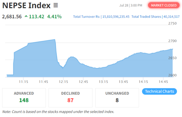 नेप्से परिसूचक ११३ अंक बढ्यो, बैंकहरुको सेयर मूल्यमा उछाल