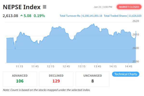 नेप्सेमा सामान्य अंकको गिरावट, कारोबार भने बढ्यो